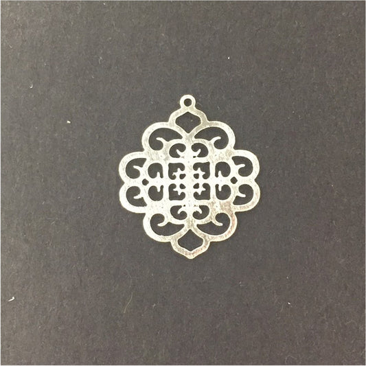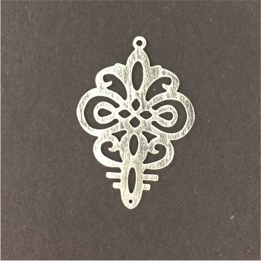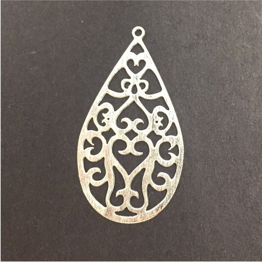 FP181 Figura Lijada Calada L Diseño Gótico Forma Gota 42 x 23 mm Espesor 0.8 mm Figura Baño Plata