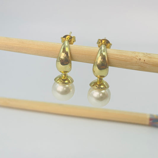 XO519 Aro Gota Perla 7.5 x 5.5 mm Espesor 4 mm Aro Baño Oro