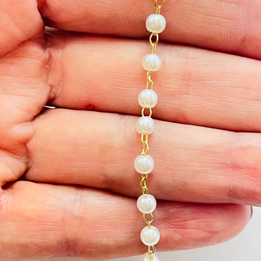 CO99 Cadena con Perlas 4 mm diá. Cadena por Metro Baño Oro