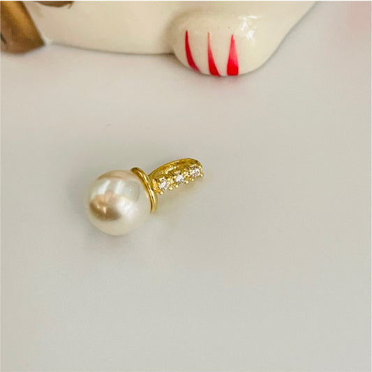 FO798 Colgante Perla con Balier fijo con circones Perla dia. 8 mm Balier 8 mm Figura Baño Oro