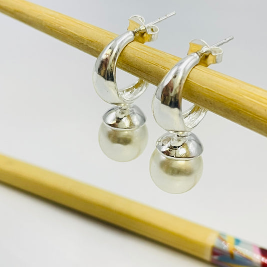 XP512 Aro Argolla con Perla Diá. Argolla 14 mm Diá. Perla 10 mm Largo Total 25 mm Aro Baño Plata