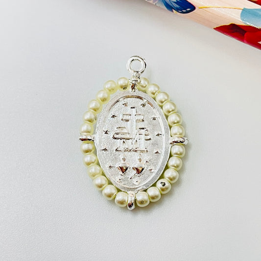 FP1144 Colgante Medalla Virgen de los Milagros con Borde de Perlas 29 x 22 mm más argollita Espesor 2.8 mm Figura Baño Plata