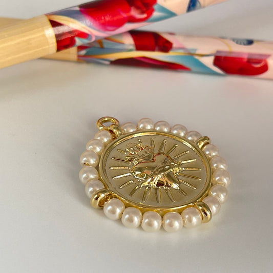 FO1118 Colgante Detente en relieve Borde Perlas de 3 mm Diá. 25 mm más argollita Espesor 3 mm Figura Baño Oro