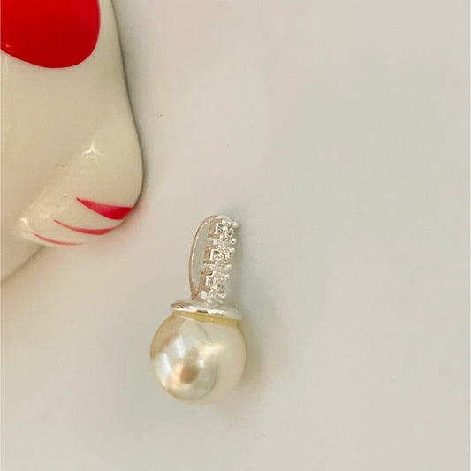 FP798 Colgante Perla con Balier fijo con circones Perla dia. 8 mm Balier 8 mm Figura Baño Plata