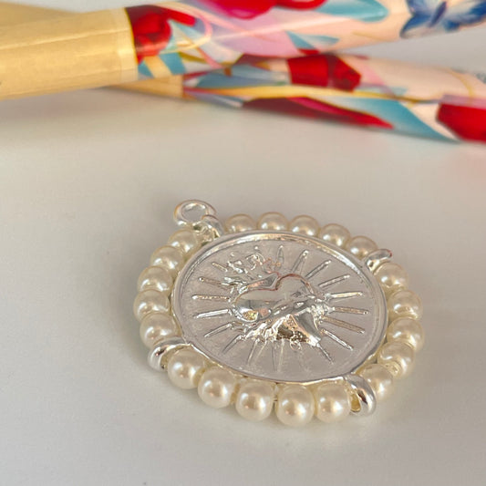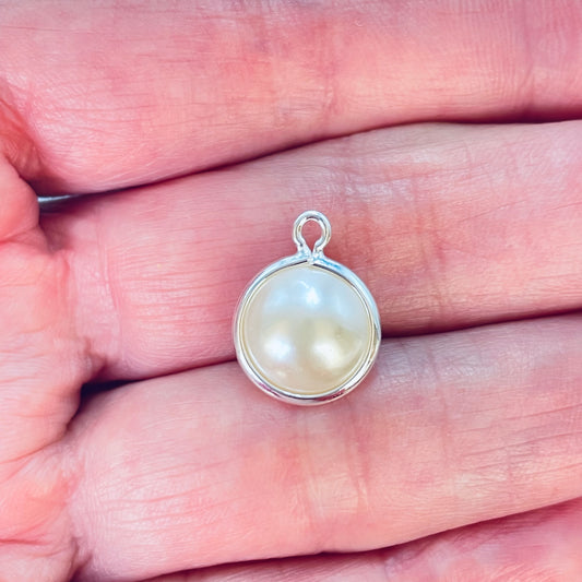 FP1182 Colgante Perla Diá. 10 mm más argollitas Espesor 6 mm Figura Baño Plata