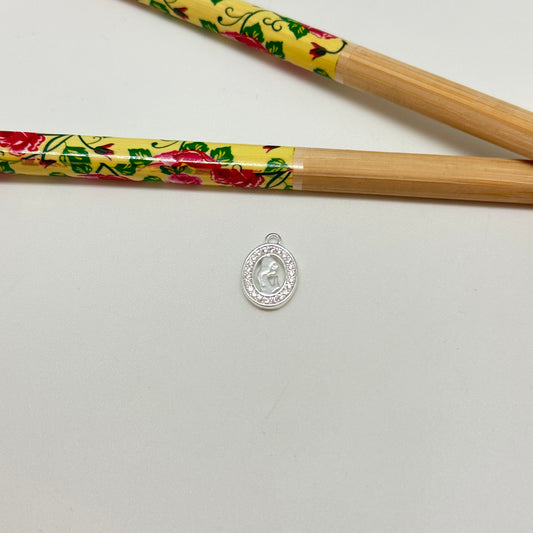 FP1042 Colgante calado Virgen niña borde con circones 13 x 10 mm mas argollita Figura Baño Plata