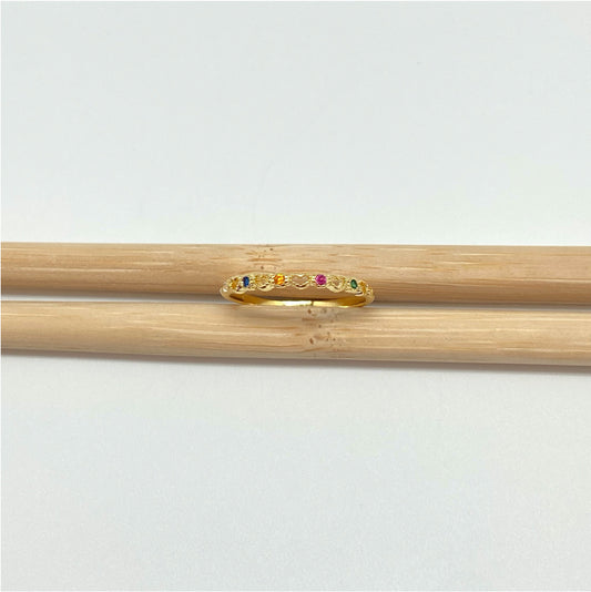 WO51 Anillo mini corazones calados y circones multicolor Ancho argolla 2 mm Anillo Baño OroPrecio habitual $3.500Precio habitualPrecio unitario por-