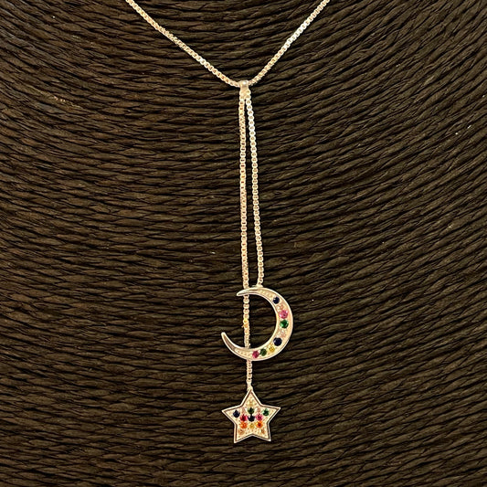 CO178 Collar Cascada Luna Estrella circones colores Cadena veneciana 40 cm mas extensor Cascada 6 cm Estrella 10 mm luna 12 mm Collar Terminado Baño OroPrecio habitual $10.200Precio habitualPrecio unitario por-