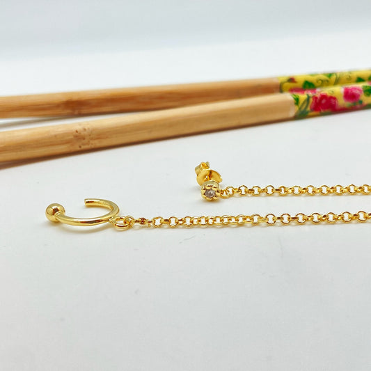 XO303 Cuff argollita con 1 bolita y aro punto de luz 4 mm borde rutilado unidos por cadena de 18 cm largo Aro Baño OroPrecio habitual $4.490Precio habitualPrecio unitario por-