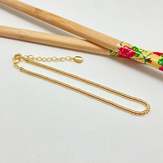 PO01 Pulsera Mostacillas Largo 16 cm más extensor de 5 cm Pulsera Baño Oro