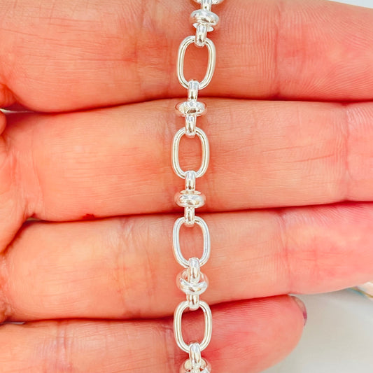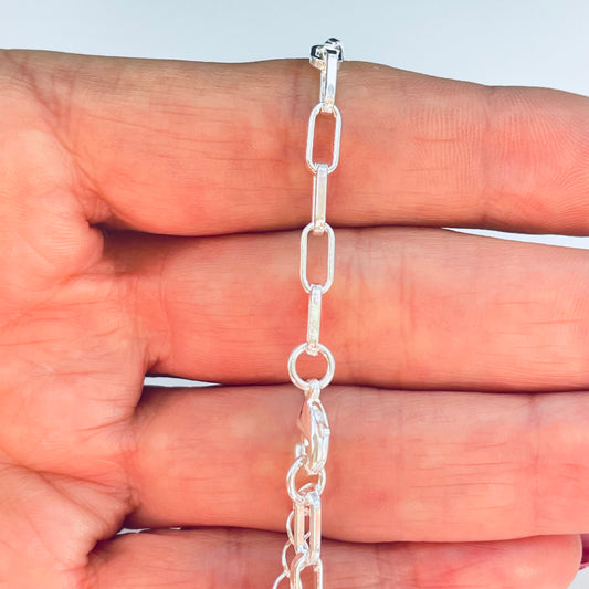 PP28 Pulsera tipo Cartier Eslabón 4.8 x 3.8 mm Largo 40 cm más extensor 5 cm Pulsera Baño Plata