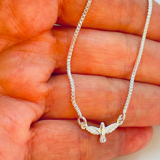 PP27 Pulsera Regulable Espíritu Santo 8 x 15 mm Espesor 1 mm Cadena Veneciana Espesor 1 mm Largo 23 mm Bolita Silicona Terminales Corazón Pulsera Baño Plata