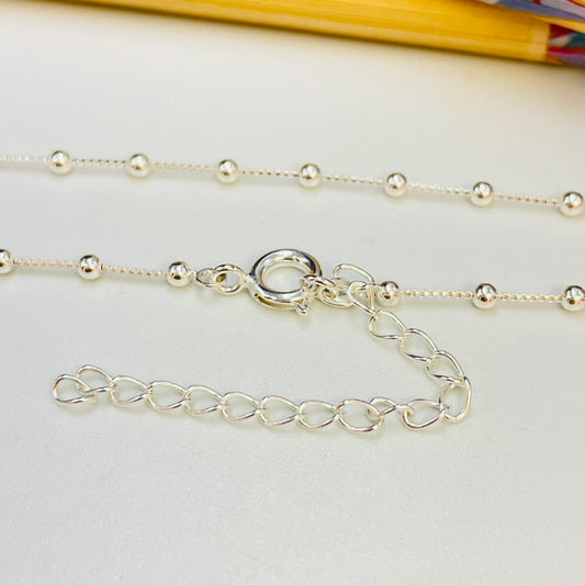 PP22 Pulsera Bolitas diá. 2 mm cadena veneciana espesor 0.8 mm Largo 16 cm más extensor de 5 cm Pulsera Baño Plata
