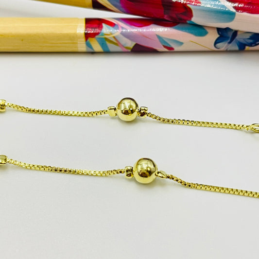 PO22 Pulsera Bolitas diá. 2 mm cadena veneciana espesor 0.8 mm Largo 16 cm más extensor de 5 cm Pulsera Baño Oro