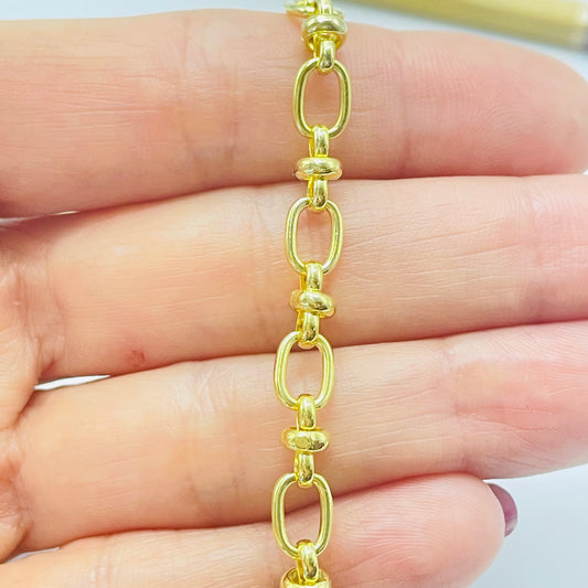 PO28 Pulsera tipo Cartier Eslabón 4.8 x 3.8 mm Largo 40 cm más extensor 5 cm Pulsera Baño Oro