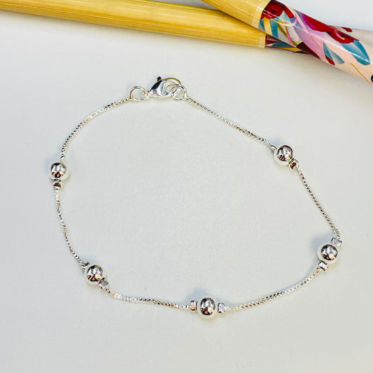 PP19 Pulsera Bolitas diá. 5 mm Cadena Veneciana espesor 1 mm Largo 16.5 cm Pulsera Baño Plata