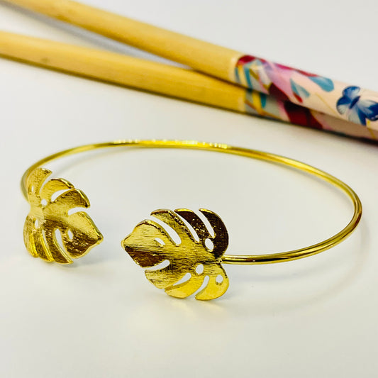 EO28 Esclava con Monstera en puntas 20 x 17 mm Diá. 65 mm espesor 1.5 mm Esclava Baño Oro
