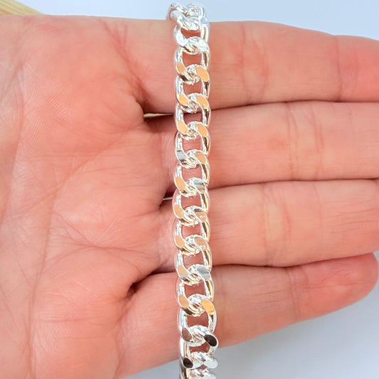 PP05 Pulsera Grumet Ancho 7.5 mm Eslabón 9 mm Largo 17.5 cm más extensor Pulsera Baño Plata