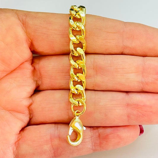 PO05 Pulsera Grumet Ancho 7.5 mm Eslabón 9 mm Largo 17.5 cm más extensor Pulsera Baño Oro