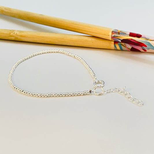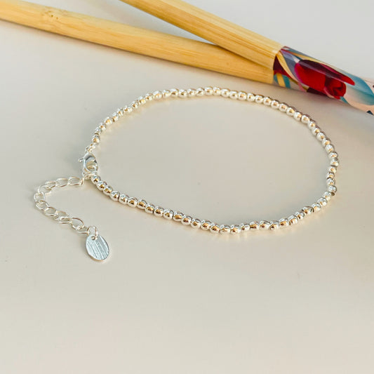 PP11 Pulsera Bolitas 2 mm Largo 15.5 cm mas extensor de 3 cm Pulsera Baño Plata