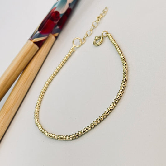 PO11 Pulsera Bolitas 2.2 mm Largo 15.5 cm mas extensor de 3 cm Pulsera Baño Oro