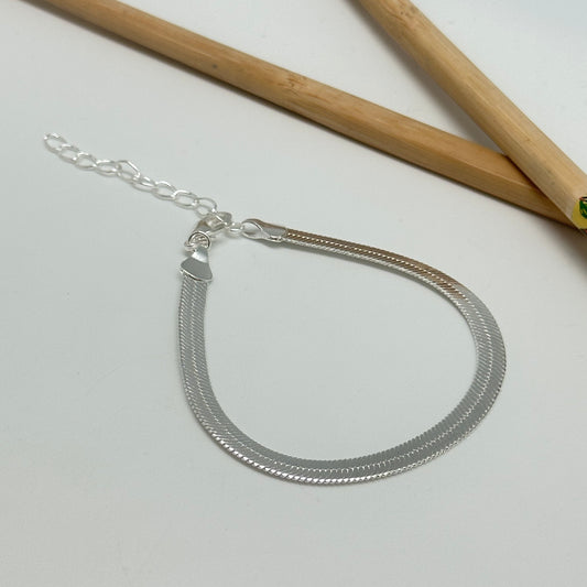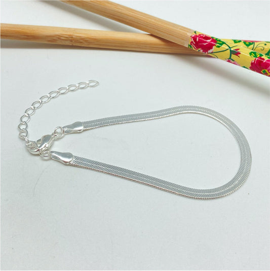 PP07 Pulsera Cinta ancho 4 mm Largo 17.5 cm más extensor de 5 cm Pulsera Baño Plata