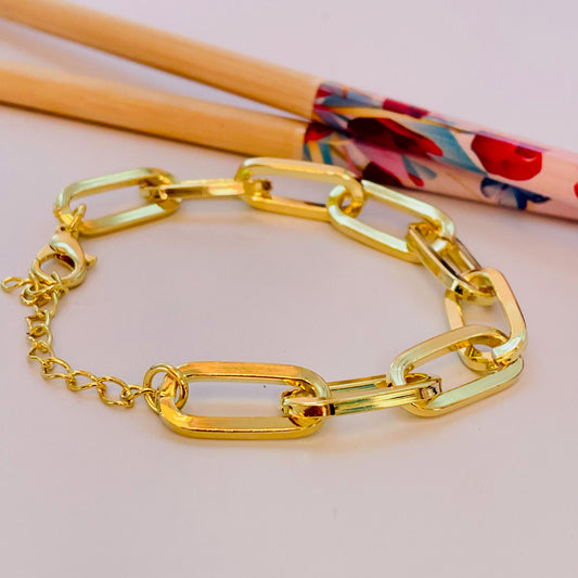 PO08 Pulsera Eslabones de 18 x 9 mm Largo 16 cm mas extensor de 5 cm Pulsera Baño Oro