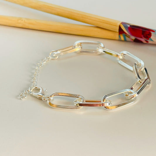 PP08 Pulsera Eslabones de 18 x 9 mm Largo 16 cm mas extensor de 5 cm Pulsera Baño Plata
