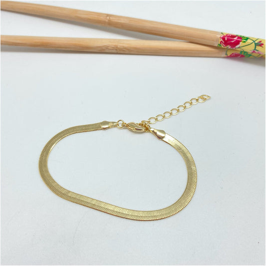 PO07 Pulsera Cinta ancho 4 mm Largo 17.5 cm más extensor de 5 cm Pulsera Baño Oro
