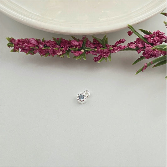 FP980 Colgante Punto de Luz Mini Flor Circón Aguamarina Diá. 4 mm Espesor 2 mm Más argollita Figura Baño Plata