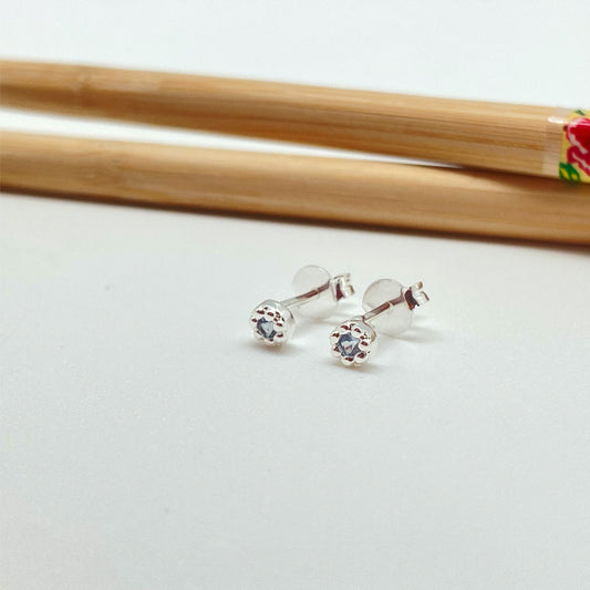 XP258 Aro Punto de Luz Mini Flor Circón Aguamarina Diá. 4 mm Espesor 2 mm Aro Baño Plata
