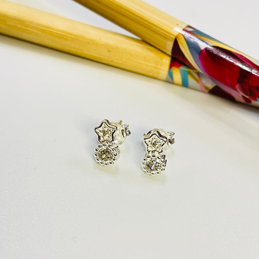 XP367 Aro mini estrella con circón 4 mm y Punto de Luz borde rutilado diá. 4.5 mm Tamaño Total 8.5 x 4.5 mm Aro Baño Plata
