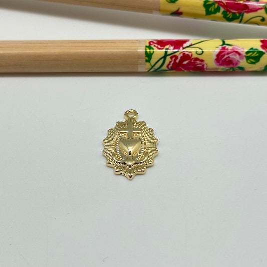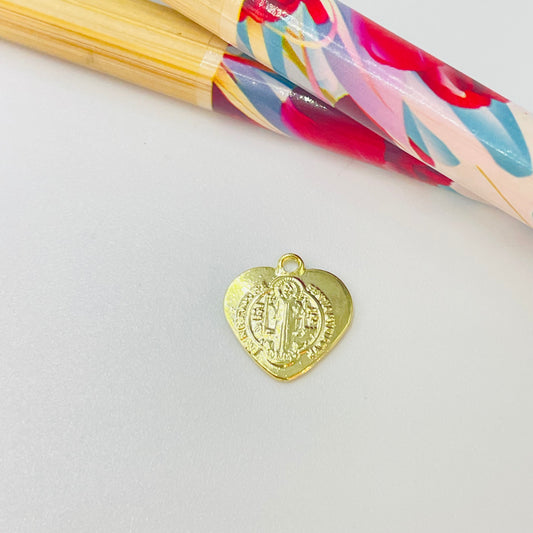 FO1152 Colgante Corazón San Benito Doble Faz Estampado 11.5 x 11.5 mm Espesor 1 mm Figura Baño Oro