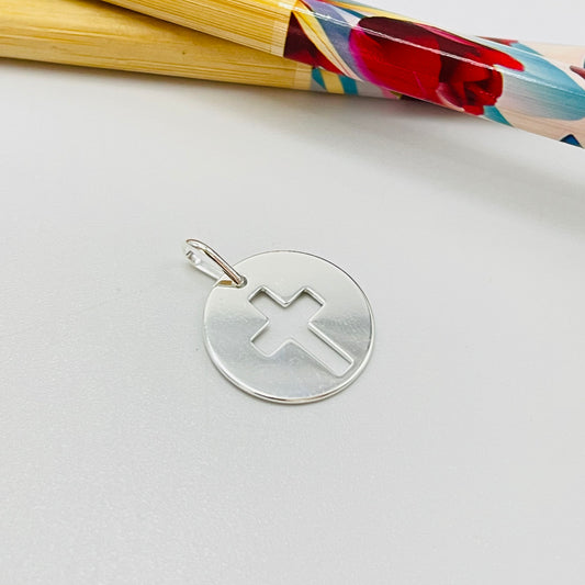 FP1089 Colgante Medalla Cruz Calada diá. 17 mm más valier Espesor 1 mm Figura Baño Plata