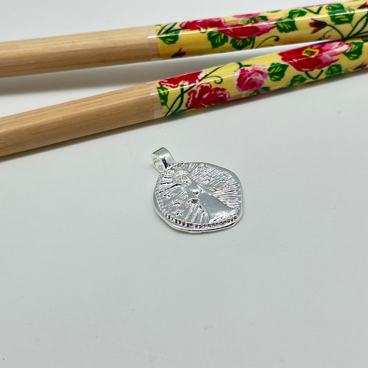 FP626 Colgante Ovalado Virgen de los Milagros Borde Calado 25 x22 mm Figura Baño Plata