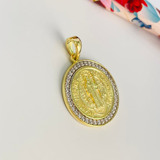 FO1039 Colgante San Benito Circones dia. 30 mm mas valier Figura Baño Oro