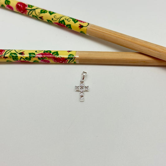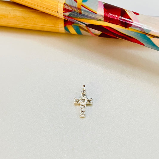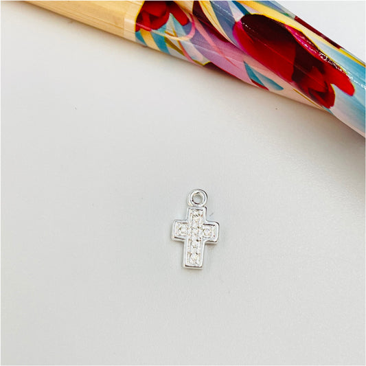 FP948 Colgante Mini Cruz con Circones 10x7 mm más argollita Figura Baño Plata