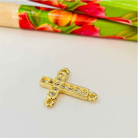 FO858 Colgante Cruz con circones para Rosario con 3 argollitas 14x10 mm mas argollitas Figura Baño Oro