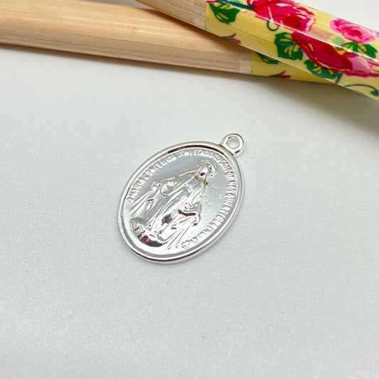 FP965 Colgante Virgen de los Milagros Ovalada 20x15 mm más argollita Figura Baño Plata