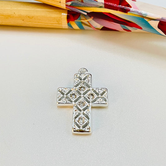 FP454 Medalla Cruz Estampada 12 mm Figura Baño Plata