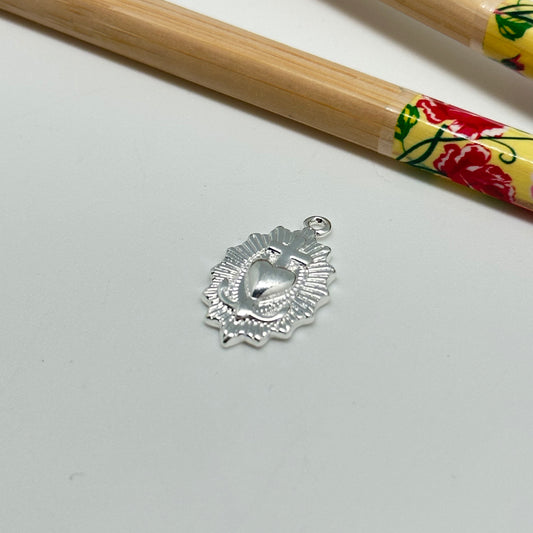 FP619 Colgante Sagrado Corazón con Cruz 20 mm Figura Baño Plata
