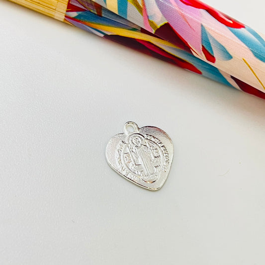 FP1152 Colgante Corazón San Benito Doble Faz Estampado 11.5 x 11.5 mm Espesor 1 mm Figura Baño Plata