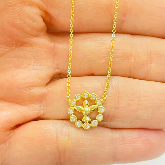 CO219 Collar Espíritu Santo diá. 12 mm mini circones de 2 mm Cadena Candado 40 cm más extensor de 7 cm y terminal mini circon Collar Terminado Baño Oro