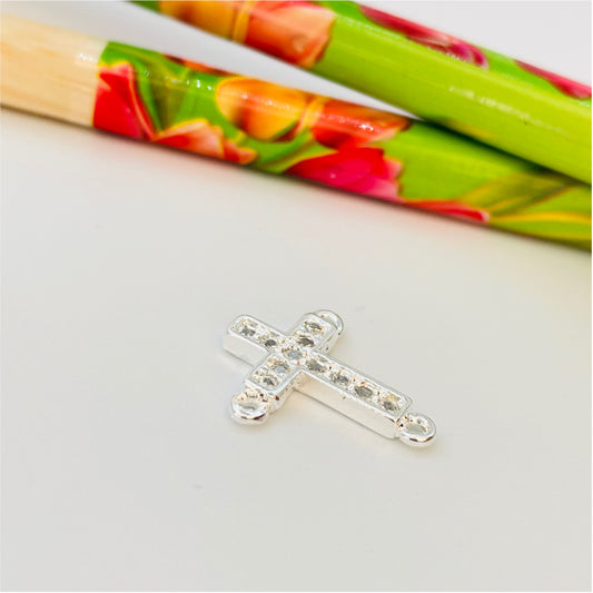 FP858 Colgante Cruz con circones para Rosario con 3 argollitas 14x10 mm mas argollitas Figura Baño Plata