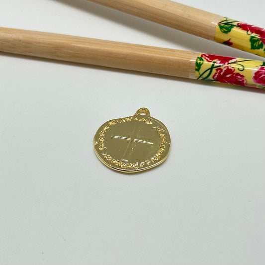 FO1033 Colgante medalla Cruz en relieve con inscripción borde irregular doble faz 18 x 20 mm mas argollita Figura Baño Oro