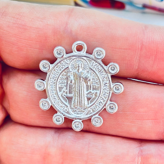 FP1225 Colgante San Benito Circones en Borde Diá. 25 mm Espesor 2.1 mm Figura Baño Plata