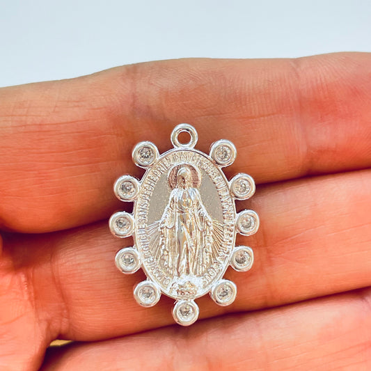 FP1282 Colgante Virgen de los Rayos o Milagros Borde circones 12 x 10 más valier de 6 mm Espesor 2.2 mm Figura Baño Plata