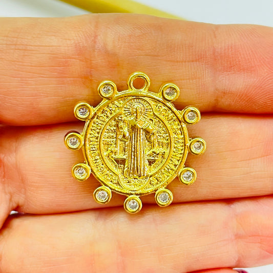FO1225 Colgante San Benito Circones en Borde Diá. 25 mm Espesor 2.1 mm Figura Baño Oro