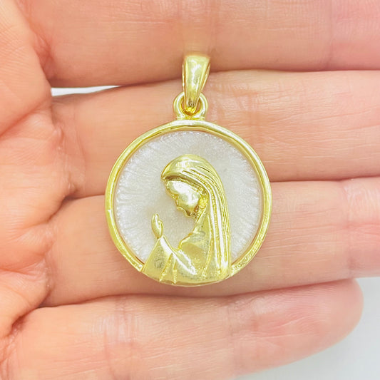 FO1051 Colgante Virgen Niña fondo Cristal diá. 23 mm más argollita más valier Figura Baño Oro