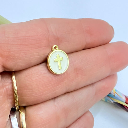 FO973 Colgante Medalla Cruz en relieve resina color 10 mm más argollita Figura Baño Oro